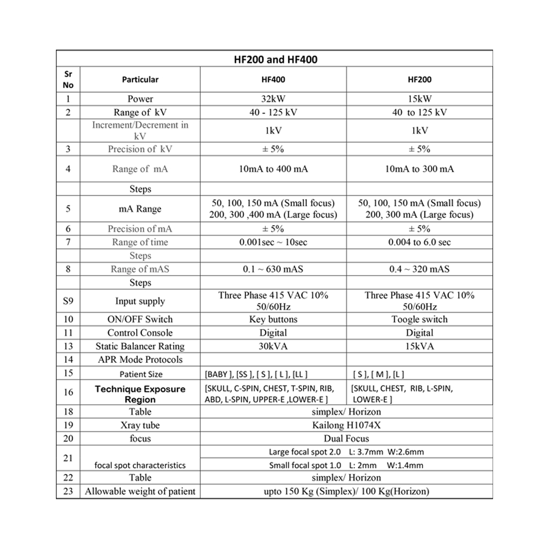 Medical diagnostic analogue and digital x-ray machines ranging from 60, 100, 300 and 500 mA Low frequency and High frequency products.